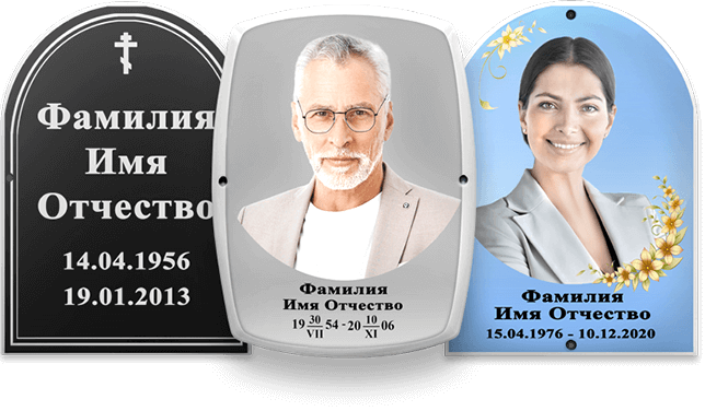 В результате, изображение не только не выгорает на солнце, но и стойко переносить любые погодные условия (дождь, снег, ветер). Материал имееет низкое водопоглащение (менее 1%), поэтому ритуальный портрет не будет подвержен дефектам из-за влажности и перепадам температур.